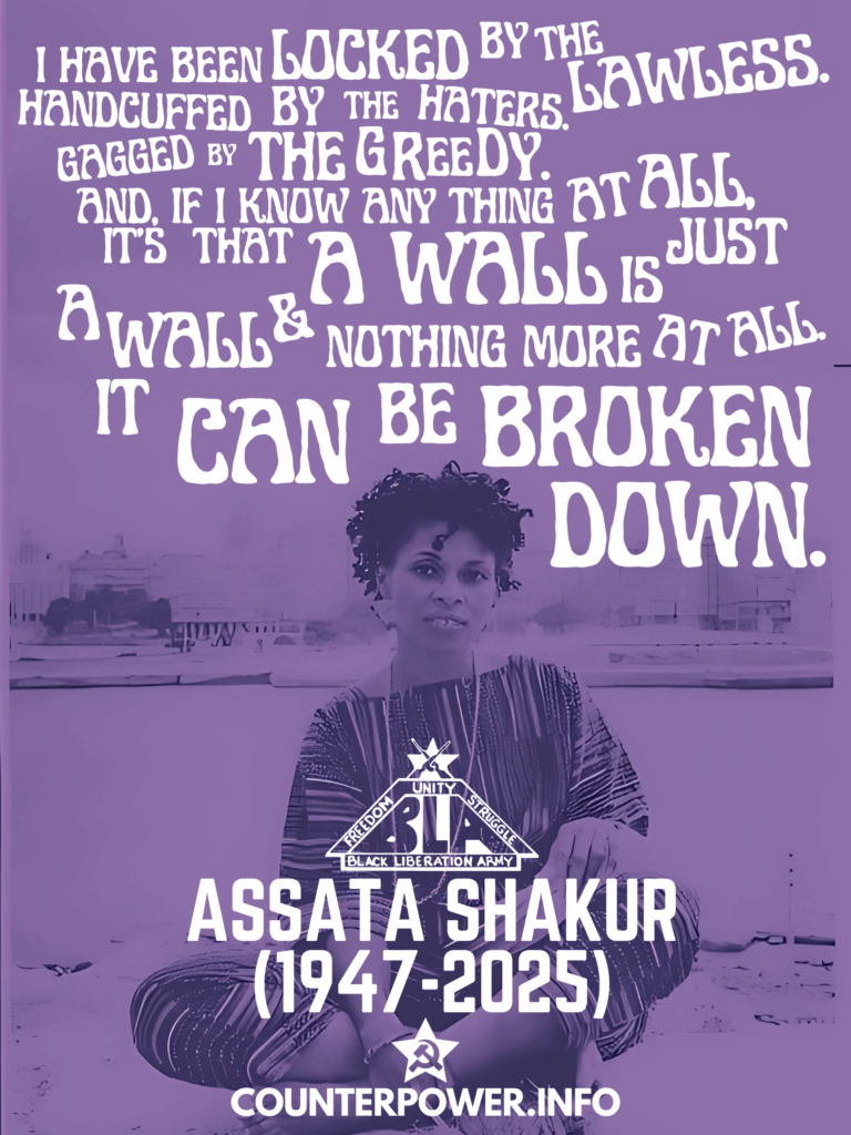 We join with millions of people around the world to mourn the loss of a heroic revolutionary, comrade Assata Shakur. Like so many, we owe an immense debt to her life of struggle in the service of Black liberation and socialism. Her inspiring life story, as told in Assata: An Autobiography (1987), has changed the lives of countless people. While the imperialist United States attempted to capture and imprison her—even offering a $1,000,000 reward—none of this was enough to stop Assata.